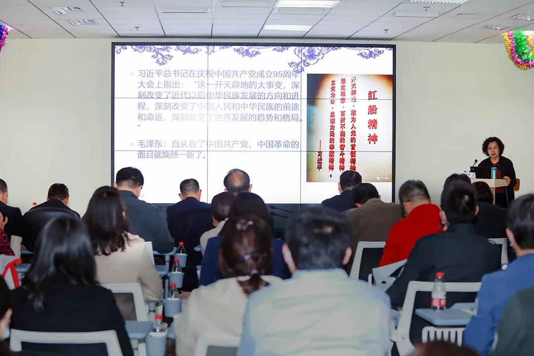 中国传媒大学马克思主义学院毛明华教授以“艰苦卓绝·百年辉煌——从党的会议谈起”为题,为所有党员上了一堂别开生面的党史教育“必修课”。毛教授指出,实事求是是马克思主义的根本观点,希望在座每个人都可以学以致用,为我们党百年的事业增光添彩。