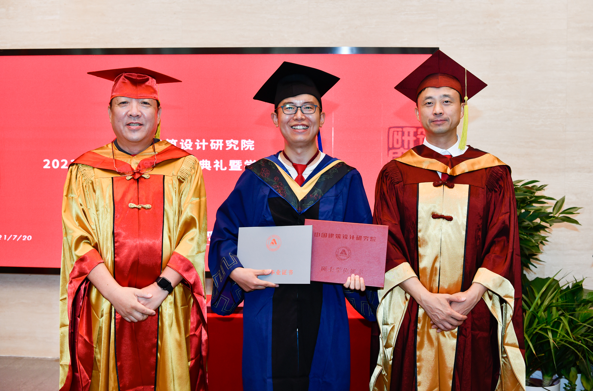 7月20日上午,2021届硕士研究生的毕业典礼和学位授予仪式在中国建筑设计研究院举行。文兵校长的嘱托,崔愷院士的寄语,还有傅熹年院士,赵冠谦、李兴钢、汪恒、王力军、刘东卫、杨海宇、徐磊等研究生导师的殷殷期盼,马海总经理的祝福,都给这6名毕业生的研究生经历画上了完满的句号。