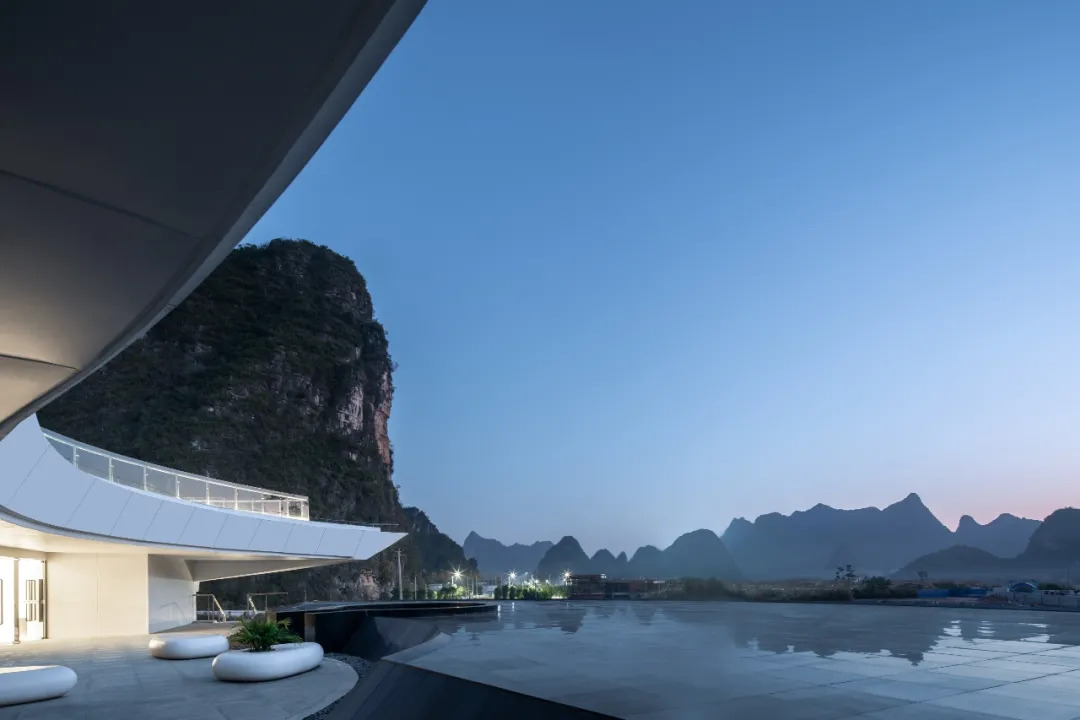 阳朔凤凰山水尚境时尚艺术中心坐落在山水环抱的阳朔新城,是凤凰文投开发的人文旅居项目的开篇之作。它先期作为接待展示中心,后期将改为艺术活动中心。结合周边独一无二的风景元素,并挖掘凤凰卫视独特的人文艺术基因,以塑造一个融于阳朔山水中的新城的标志性场所为设计目标。