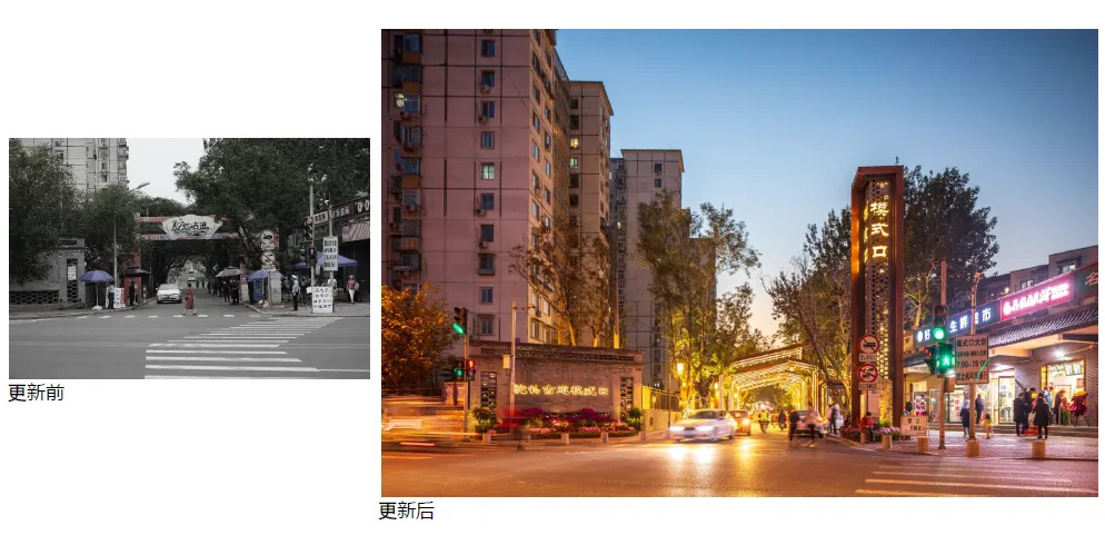 模式口城市更新(一期)已于2021年10月完工,“十一”期间举办开街仪式并向广大市民开放,中央电视台、北京卫视、人民网等多家主流媒体进行了专题报道。模式口景观环境整治实践以“景观“更新为”良药“,为北京城市更新提供了“新模式”。