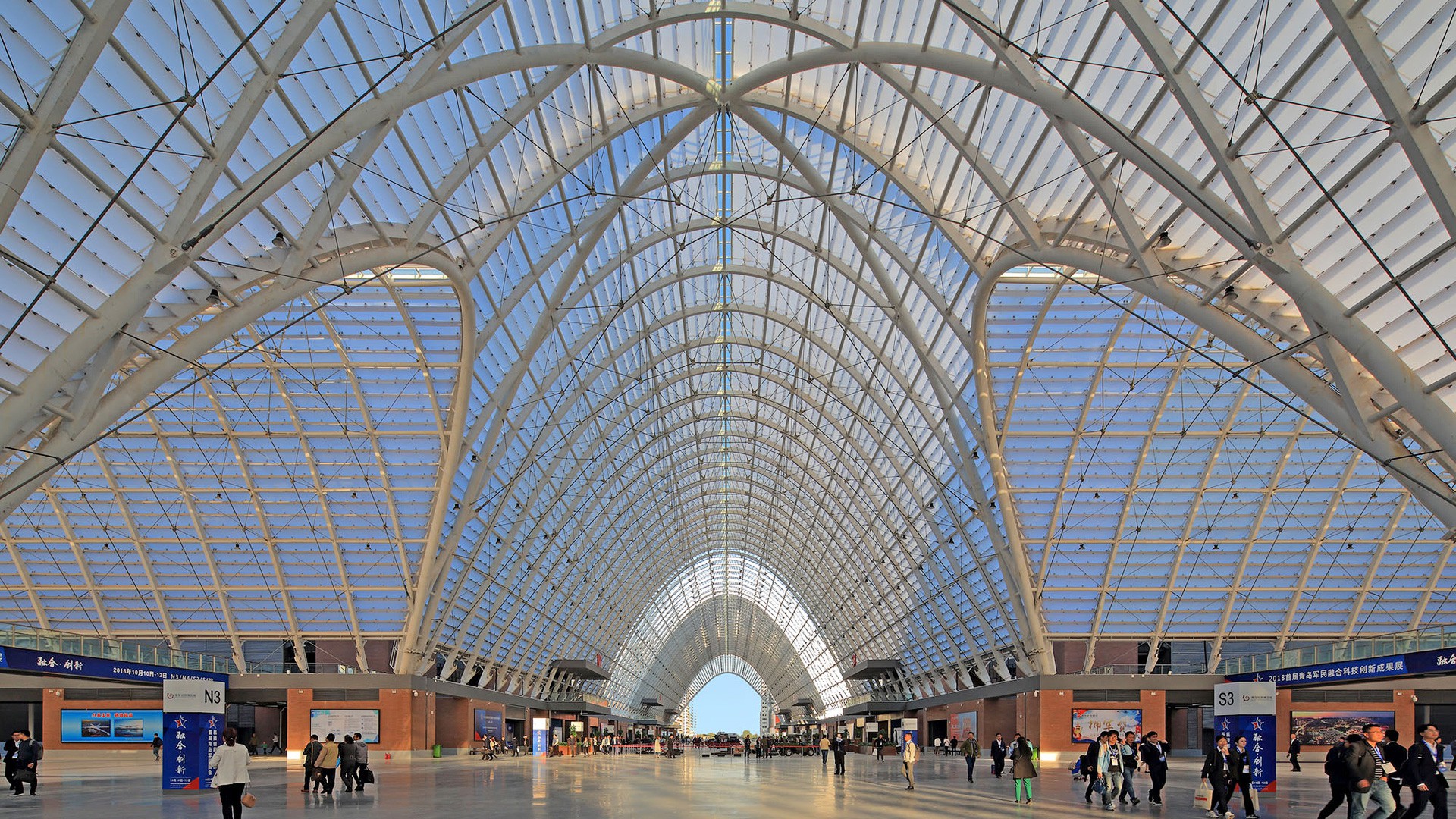 青岛世界博览城拥有近临海景的优势。建筑形式通过中央十字展廊将12 个独立展厅相连,同时展廊空间与周边道路、环境共享,形成开放式布局,创造出新的城市景观。气势恢宏的中央展廊,在减少能耗的基础上,具有鲜明的形象标志性,中央展廊能够为东亚海洋合作论坛及海事防务展提供最为适宜的大型展示空间,具备良好的天气适应性,同时与青岛独特的人文历史相契合。各展厅简洁、易用,与展廊保持着高度的融合性,同时也在阐述以海洋文化为背景的社会共识。展馆近人尺度采用了幕墙砖系统,与青岛独有的建筑风格呼应,延续青岛宜居城市所表达的城市气质。