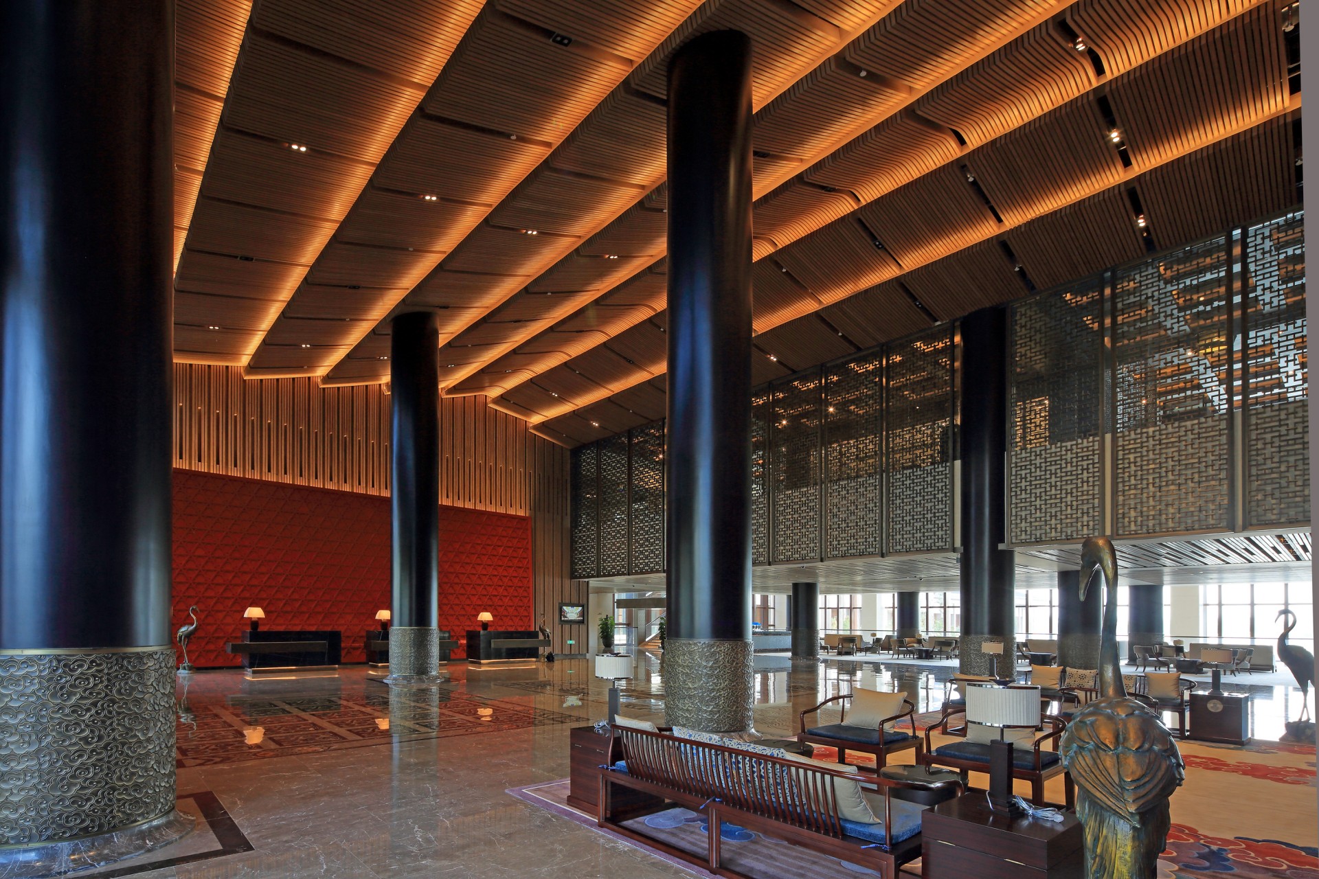 雁栖酒店位于北京雁栖湖国际会都,是北京的国宾级会议接待目的地,APEC、G20 峰会等世界级会议都曾在此举行。其规划及建筑设计在传承传统文化的基础上,探求建筑与自然的和谐共生,并满足现代高端会议活动的需求。酒店位于国际会都核心岛的东部,紧临会议中心。酒店三面环路,东临雁栖湖,其布局采用院落围合式,利用东西向场地高差,使建筑群呈现既分散又相对集中,错落中又有秩序的风格,从空间上体现了中国传统院落布局的精髓,坡屋顶按现代方式处理,也继承了传统建筑的特点。