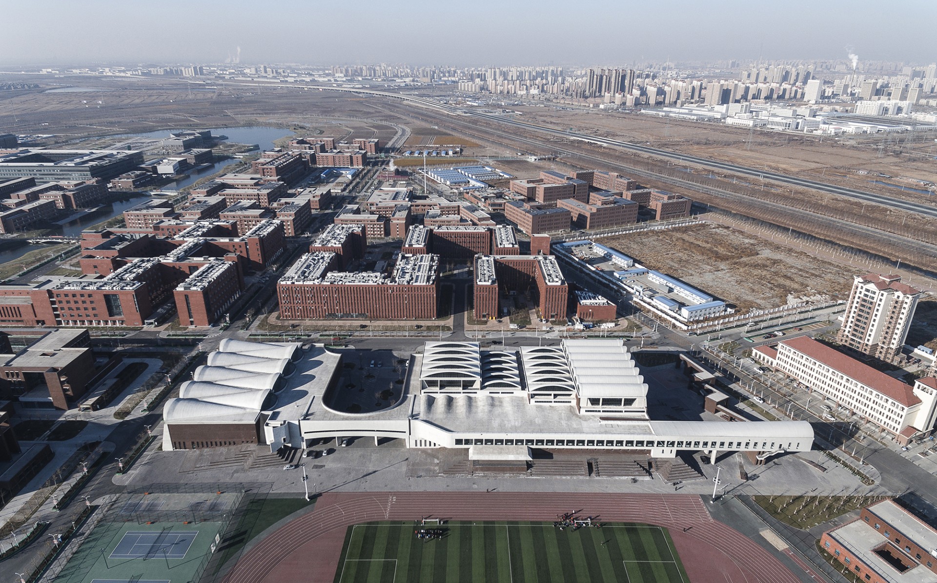 项目地点 天津市津南区 用地面积 33,950㎡ 建筑面积 18,798㎡ 建筑高度 24m 设计时间 2012年 建成时间 2015年