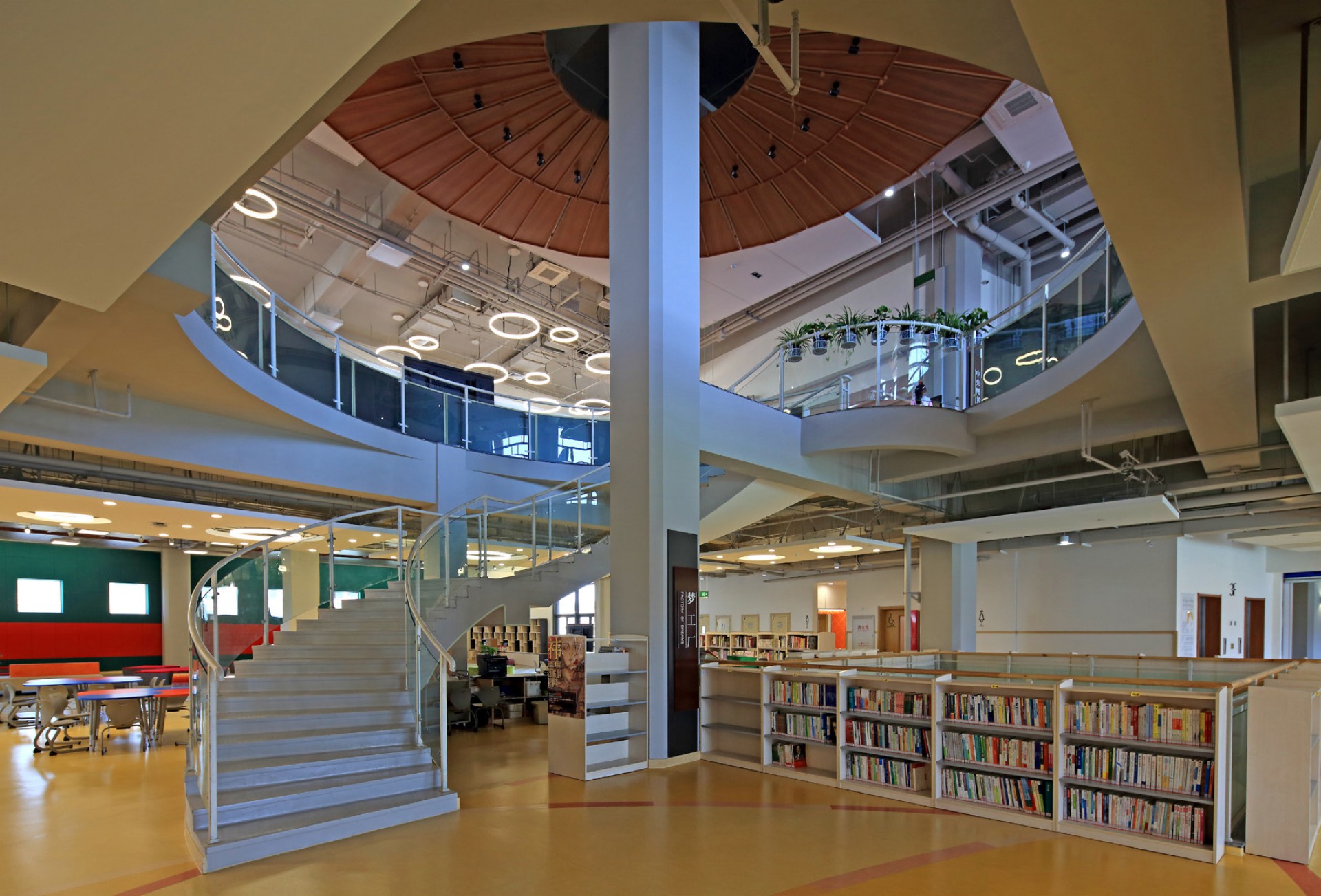 中关村第三小学的新校区设计,以取自传统土楼的形式和高度复合化的功能组织,解决了用地紧张、需求众多的困境。饱满的弧形教学楼将操场包围在中央,其外围墙面厚实,确保安全,内侧玻璃通透,确保视线通达,以利师生交流。建筑的主要开口朝向南侧,为主楼争取了更多的采光面,也阻挡了冬季的北风,并利用遮阳、通风等策略增加对自然气候的适应。在位于地下室的下沉庭院周边布置了排练厅等需要采光的教室,周边安排游泳池、餐厅、教师餐厅、厨房等功能。、
