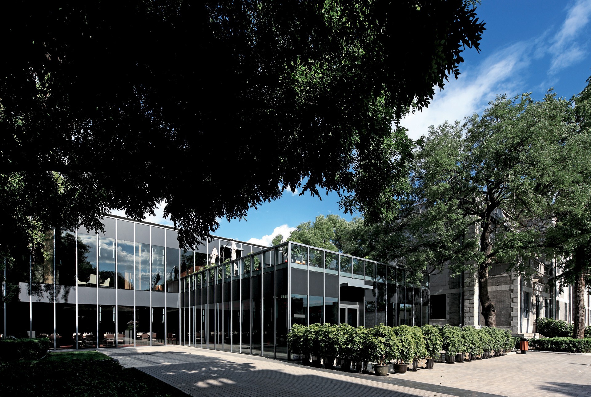 项目原址为20世纪初美国公使馆所在地,有五栋北京市文物保护建筑,改造方案通过对院落的复建和整治,形成包括餐饮、俱乐部、画廊、剧场在内的顶级文化、生活时尚中心。增加的新建筑采用前低后高、缩小体量的策略,处于从属地位。新老建筑内部相连,主入口仍在老楼中,保持院落原有格局。新老建筑相连处采用钢和玻璃的轻型构造,新建筑在形态上也尽可能通透、轻巧,简约精致的技术和材料也能明显区别建筑的年代。
