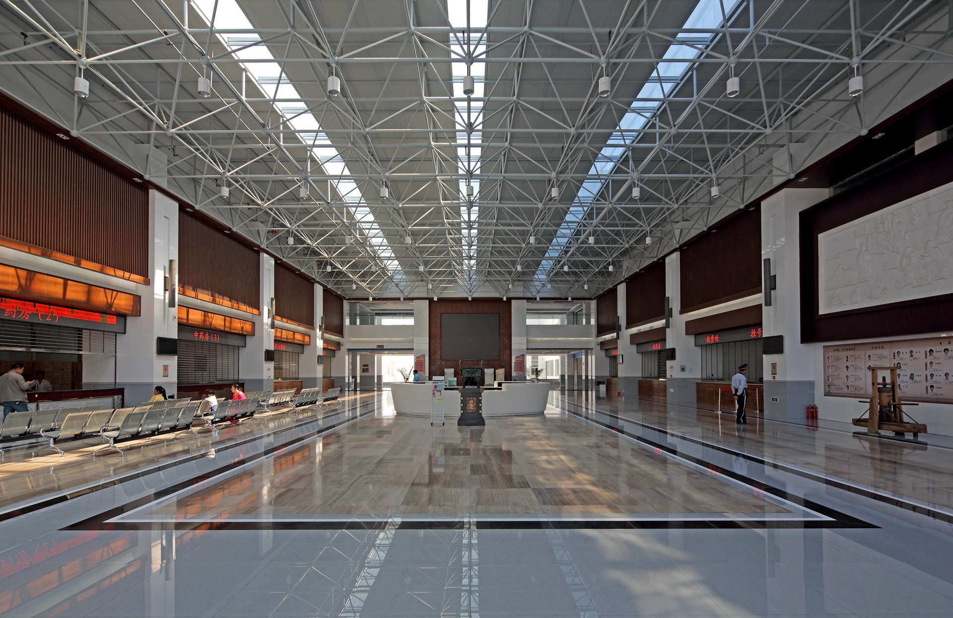 大同市中医院的设计,吸收了山西传统民居院落的布局特点,按照一定的秩序,将庭院串联组合在一起。经过简化的院落空间,与建筑虚实相间,形成具有一定韵律变化的环境。建筑造型同样吸收了传统民居单坡屋顶的形式,屋面内倾,强调内部良好的院落环境。设计同时引用“经络”这一中医治疗的基本特点,蜿蜒曲折的坡屋顶形成贯穿整体的建筑“经络”,暗合中医学的经络理念。