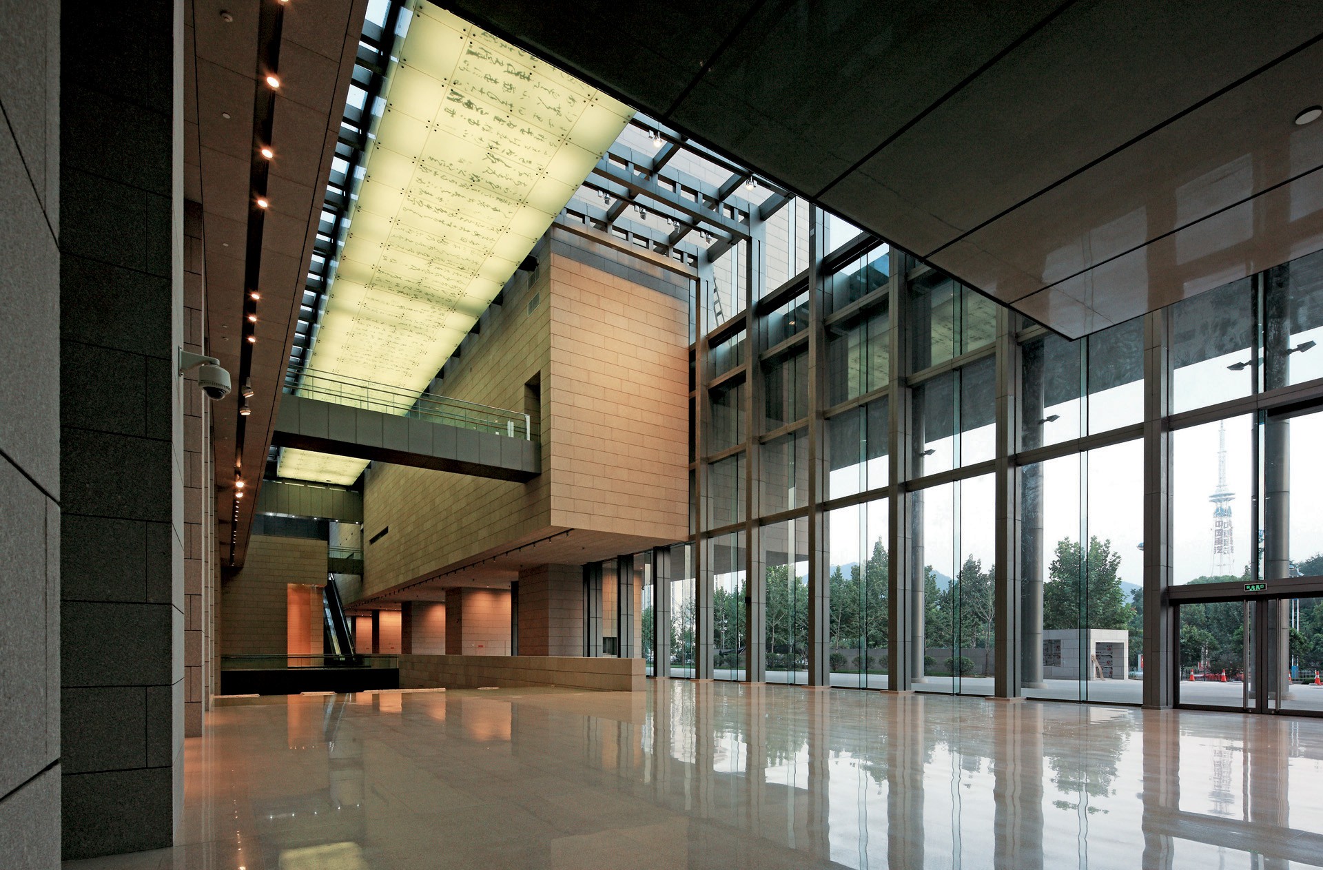广电中心扩建设计需要解决与各个建筑衔接、统一的问题。位于狭长用地上的建筑,通过连串排布的长条实体和玻璃厅,形成虚实相间而富有震撼力的形态。建筑体量西高东低,在道路交叉口形成夸张的悬挑,成为文化轴线上重要的节点。以“巨石”作为隐喻的外部形象,体现了山东的地域性和文化底蕴,同时也以巨型筒体结构支撑、悬浮和主楼层层叠合的形态,形成强壮、简洁、富有力度的整体氛围。