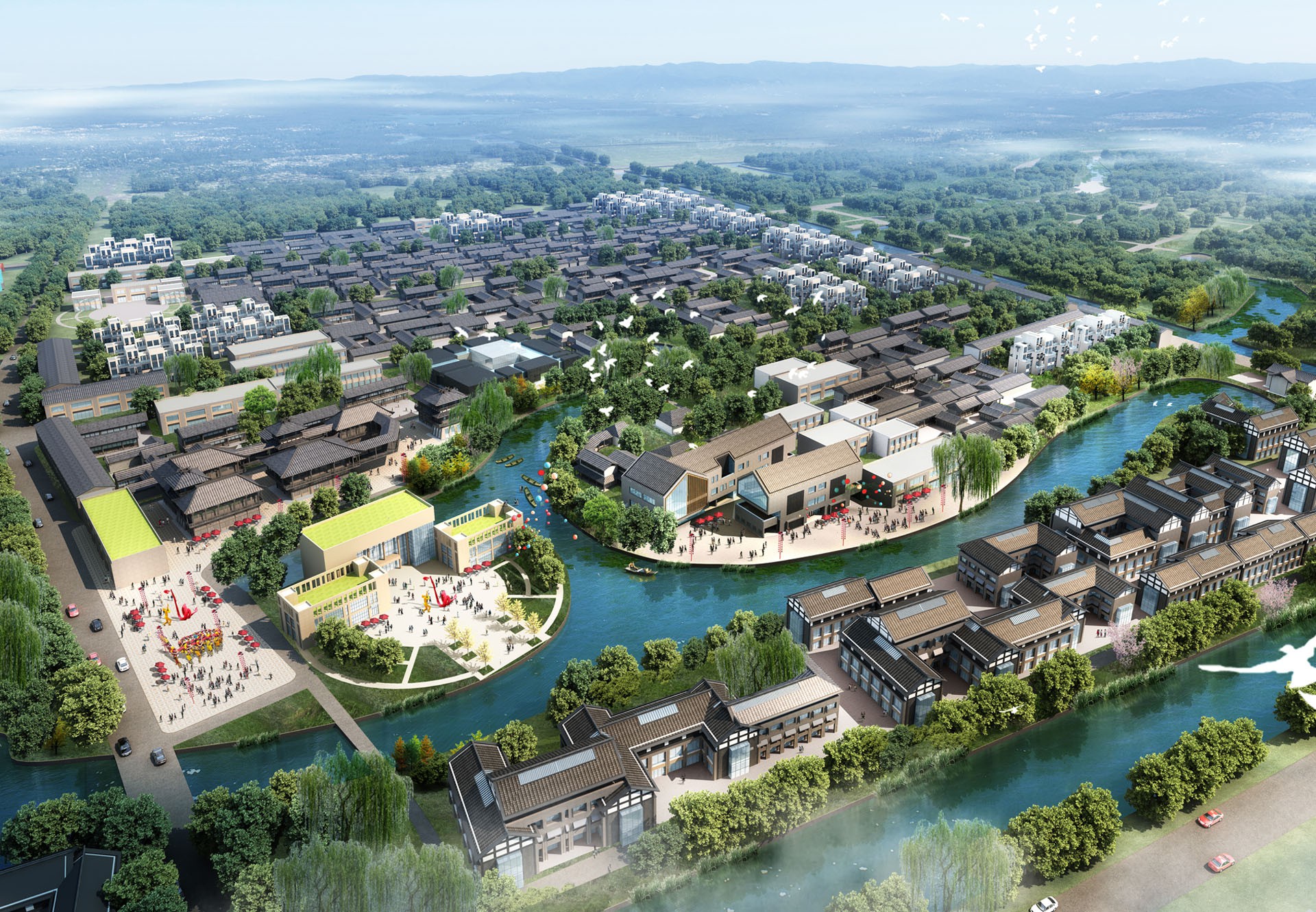规划以前瞻性、可操作性为原则,在深入挖掘提炼大纵湖镇核心特色的基础上,通过整体概念谋划、核心区城市设计、老镇区风貌引导、重点街巷河道节点设计的层层递进,为未来小镇相关的建设,提供有效的设计指导与示范,实现“一张蓝图绘到底”。