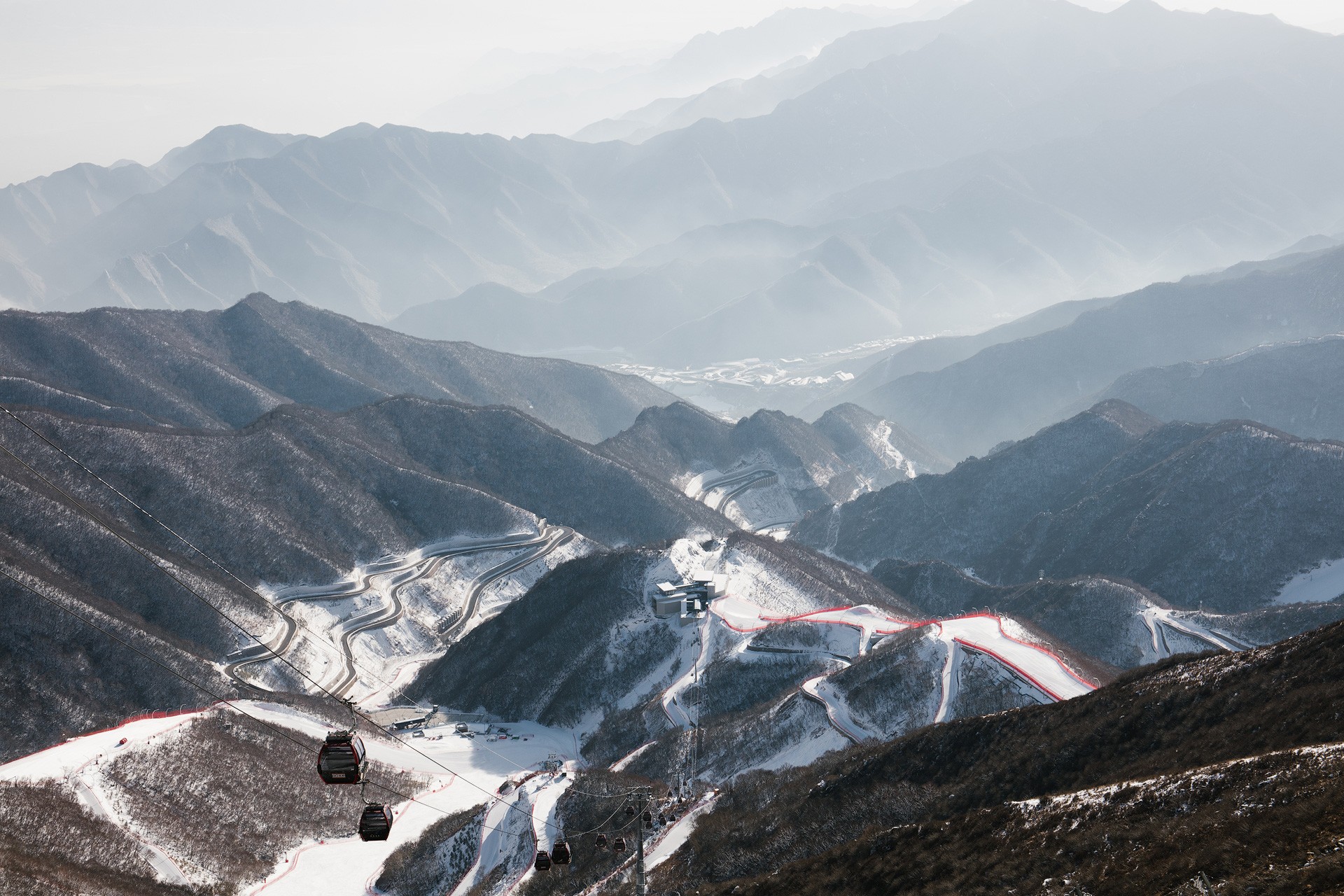 高山滑雪项目被称作“冬奥会皇冠上的明珠”,国家高山滑雪中心以“山石”作为赛道主题场地要素,创造出多种差异并存的赛道,确立了在世界高山滑雪赛道中的地位。雪道最大落差为925米,包括4条竞技雪道、4条训练雪道、3条回村雪道、8条联系雪道、15条技术道路和2条拖牵雪道,总长度约为26.2公里,雪道水平面积达11.4公顷。